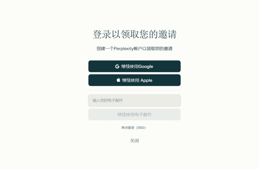 设置完成后,页面会自动跳转至 Perplexity 登录页,使用你刚刚注册的邮箱登录即可。