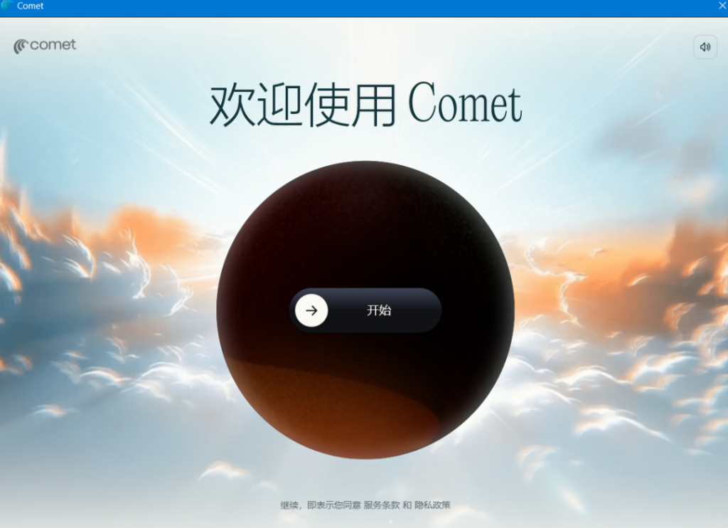 安装完成后打开Comet浏览器,点击”Get started”开始设置。