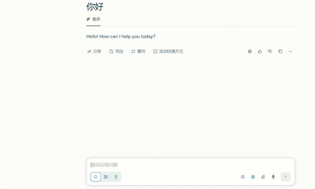 登录成功后,随便在对话框里问一个问题,比如“你好”或者“今天天气怎么样”。