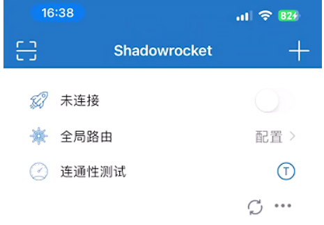 Shadowrocket 强大的地方在于其丰富的导入方式。打开 App 主界面,点击左上角的  号或扫描图标即可开始添加: