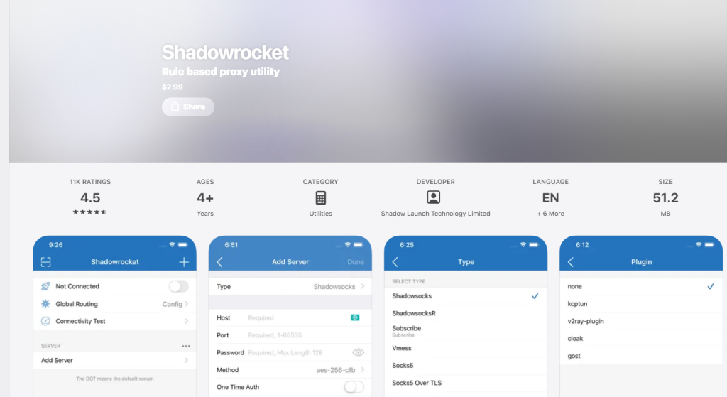 • App Store 官方下载地址https://apps.apple.com/us/app/shadowrocket/id932747118