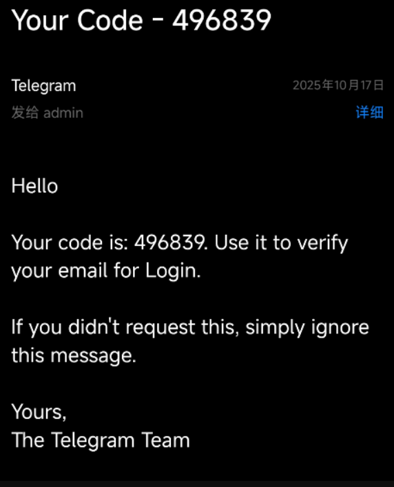 4、输入验证码:Telegram 会向您的手机号及邮箱发送验证码(可能包含数字或字母),分别填入框内即可完成验证。