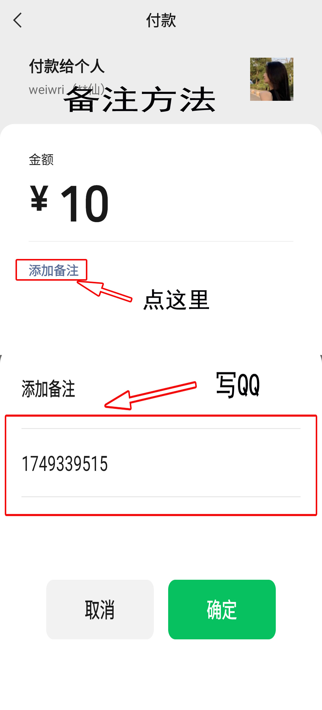 注意:若没有备注,请直接发付款截图(含转帐单号的)。